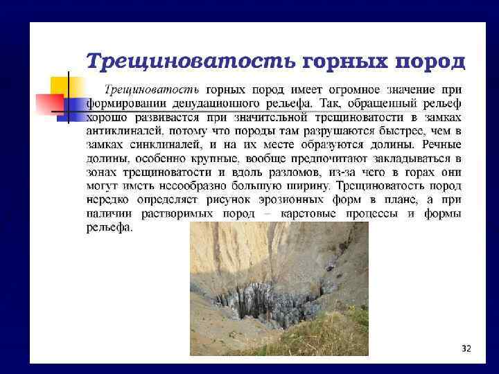 ЛЕКЦИЯ 6 СТРУКТУРНО-МЕХАНИЧЕСКИЕ ОСОБЕННОСТИ МАССИВА ЕСТЕСТВЕННАЯ И ИСКУССТВЕННАЯ ТРЕЩИНОВАТОСТЬ а в б г