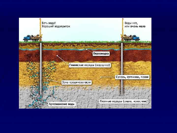 Капиллярная вода, находящаяся в породе в оторванном от зеркала грунтовых вод состоянии (подвешенная вода), способствует увеличению связности породы, увеличивает допустимые нагрузки и углы откосов в отвалах. Если капиллярная вода связана с ее источником, она становится напорной и понижает устойчивость откосов. Вид воды определяет возможные способы осушения месторождения. Наиболее легко поддаются дренажу гравитационные воды, значительно труднее (отжатием, электродренажом) — капиллярные. Из максимально увлажненной породы извлечь механическими средствами всю воду невозможно. Весьма трудно отдают воду лёссы, глины, очень мелкие пески (плывуны).