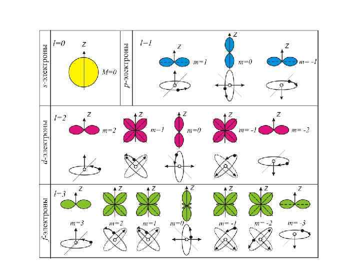 Нельзя не знать! l – орбитальное квантовое число (определяет момент импульса электрона ); l=0, 1, …, (n-1) – момент импульса электрона Орбитальное квантовое число l характеризует эллиптичность орбиты электрона 0 1 2 3 обозначения состояния l электрона в атомной s p d f физике Область пространства, в которой высока вероятность обнаружить электрон (не менее 0, 95), называют орбиталью.