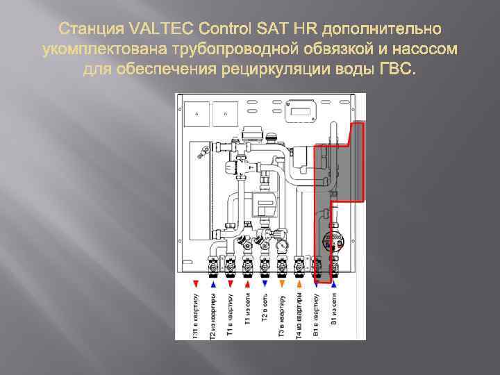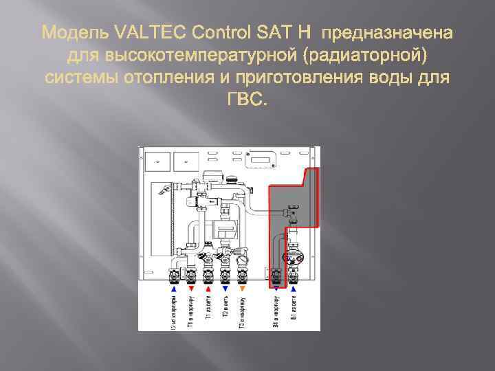 VALTEC Control SAT Станция VALTEC Control SAT представляет собой индивидуальный квартирный тепловой пункт (ИТП) нового поколения – блок-модульный, адаптированный к интеграции в автоматизированные системы сбора данных учета и обеспечивающий настройку оптимальных параметров потребляемых ресурсов. Квартирная станция является экономически эффективной системой энергоучета. Учет расхода воды – холодной и горячей, а также тепловой энергии на отопление и ГВС обеспечивается счетчиками воды и тепла. Благодаря наличию импульсных выходов показания водосчетчика и теплосчетчика можно передавать на пульт диспетчера ресурсоснабжающей организации в режиме реального времени по сетям современного стандарта.