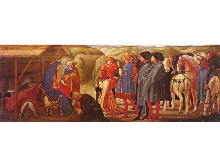 • Во второй пол. XV в. с усилением роли патрициата в искусстве еще более приобретают значение изящество и роскошь. Евангельские сюжеты, изображенные Доменико Гирландайо (1449— 1494) на стенах церкви Санта Мария Новелла представляют собой трактовку сцен быта высших слоев флорентийского общества. • Особой изысканности флорентийское искусство достигает в конце века при Лоренцо Медичи, прозванного Великолепным (1449— 1492). Трезвый и даже жестокий политик, настоящий тиран, Лоренцо был одним из образованнейших людей своего времени. Поэт, философ, гуманист, меценат, язычник по мироощущению, склонный, однако, к религиозной экзальтации, он превратил свой двор в центр художественной культуры того времени, где нашли приют такие писатели, как Полициано, такие ученые и философы, как Пико делла Мирандола, такие великие художники, как Боттичелли и Микеланджело. Охоты, карнавалы, турниры сменяют друга, участники проявляют себя в искусстве живописи, музыки, скульптуры, в красноречии и поэзии.