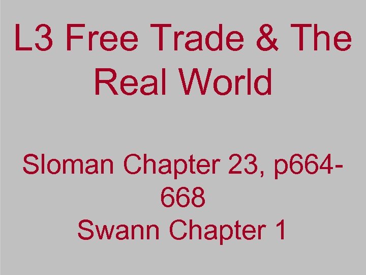 L 3 Free Trade & The Real World Sloman Chapter 23, p 664668 Swann Chapter 1