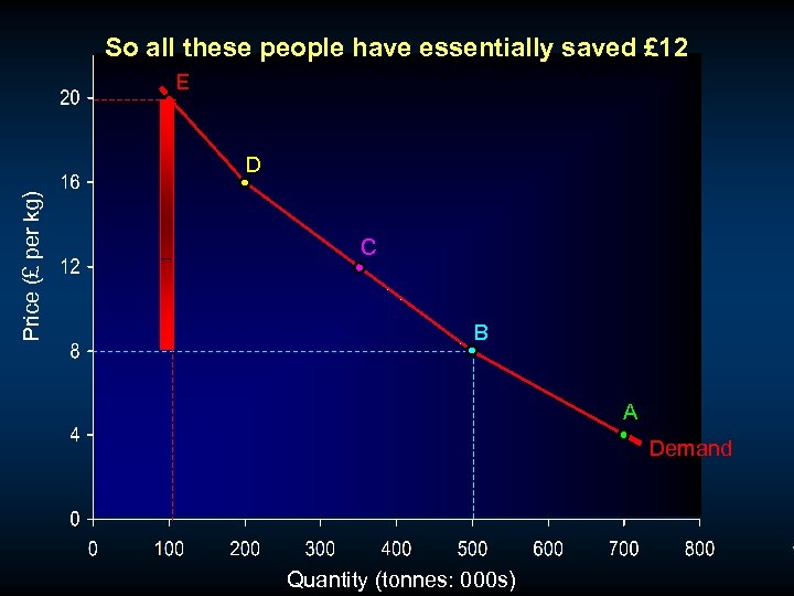 So all these people have essentially saved £ 12 E Price (£ per kg) D C B A Demand Quantity (tonnes: 000 s)