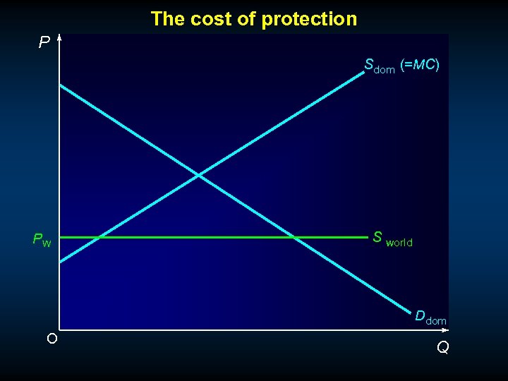 The cost of protection P Sdom (=MC) PW S world Ddom O Q