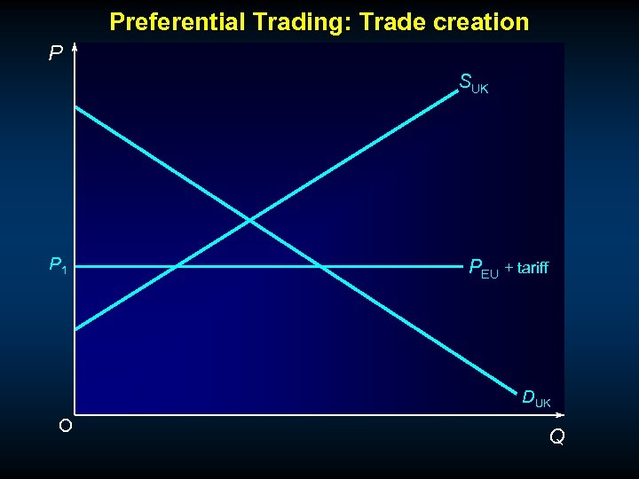Trade creation P SUK P 1 PEU + tariff P 2 PEU DUK O Q 4 Q 2 Q 1 Q 3 Q