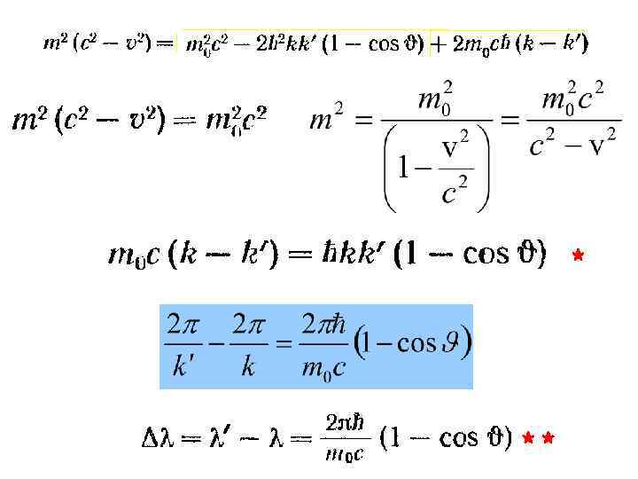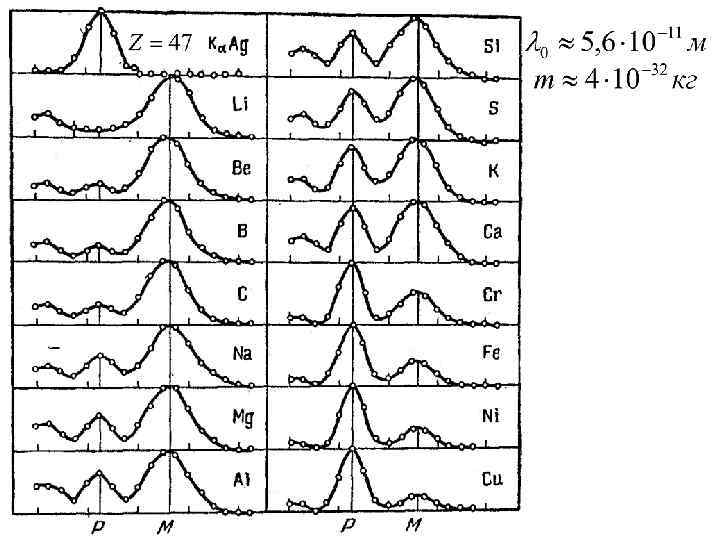 3. Особенности эффекта Комптона, его наблюдения и изучения 1. Необходимость использования квазимонохроматического первичного рентгеновского излучения 2. Необходимость спектрального анализа рассеянного излучения 3. Наличие в рассеянном излучении двух частот (длин волн), соответствующих первичному излучению и излучению меньшей частоты (с большей длиной волны) 4. Независимость увеличения λ от рода рассеивающего вещества и длины волны первичного излучения 5. Зависимость увеличения λ от угла, под которым регистрируется рассеянное излучение 6. Зависимость интенсивности длинноволновой компоненты рассеянного излучения от рода рассеивающего вещества