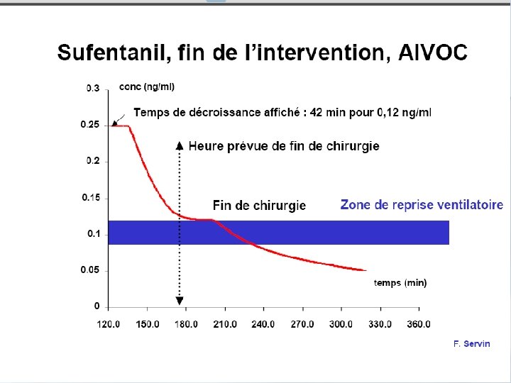 TEMPS DE DECROISSANCE Valeurs cibles pour le réveil ou la reprise de ventilation spontanée Propofol Sufentanil Remifentanil 0. 8 – 1. 5 g/ml 0. 1 – 0. 15 ng/ml 1 ng/ml Pour le Sufentanil, le temps de décroissance est élevé par rapport à la concentration cible habituellement utilisée. Il faut donc anticiper l’arrêt du système