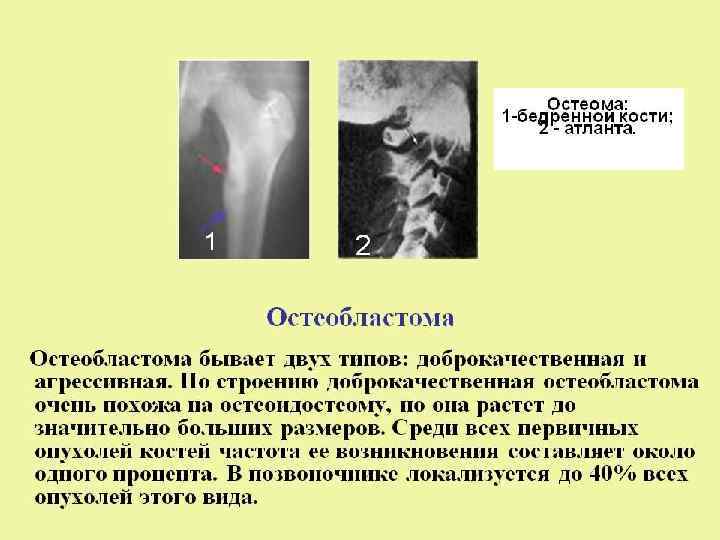 II. КЛАССИФИКАЦИЯ • Классификация опухолей утвержденная ВОЗ в 1972 году. 1. Хрящеобразующие опухоли. • А. Доброкачественные: хондрома хондробластома; остеохондрома или костно-хрящевой экзостоз; хондромиксоидная фиброма. • Б. Злокачественные: перостальная хондросаркома; мезенхимальная хондросаркома; хондросаркома. • 2. Костнообразующие опухоли. • А. Доброкачественные: остеома, остеоид-остеома и остеобластома (остеобластокластома). • Б. Злокачественные: остеогенная саркома; остеосаркома паростальная