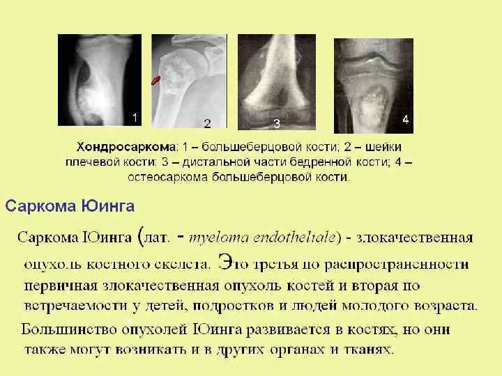 • Опухоли костей • Первичные опухоли костей образуются достаточно редко и среди других злокачественных новообразований их процент невелик. По статистике первичные опухоли развиваются у женщин – 0. 6 -0. 7, у мужчин – 1 на 100000 населения. Считают, что доброкачественные новообразования костей возникают в 2 -2. 5 раза реже, чем злокачественные. Такие опухоли чаще всего возникают в молодом и среднем возрасте - от 14 до 28 лет. Чаще опухоли возникают в длинных трубчатых костях и костях таза. • Причина возникновения первичных опухолей костей неизвестна. Вторичные новообразования обычно появляются как озлокачествление диспластических процессов (деформирующий остеоз, множественный хондроматоз костей), которые необходимо отнести к предопухолевым заболеваниям. Злокачественные новообразования костей изучены намного хуже, чем другие опухоли. Это объясняется их редкостью, отсутствием в больничных учреждениях страны специализированных отделений, поэтому такие новообразования не учитывают как отдельная нозологическая форма. Самый большой опыт в диагностике и лечении этого заболевания накопили в онкоцентрах Москвы.