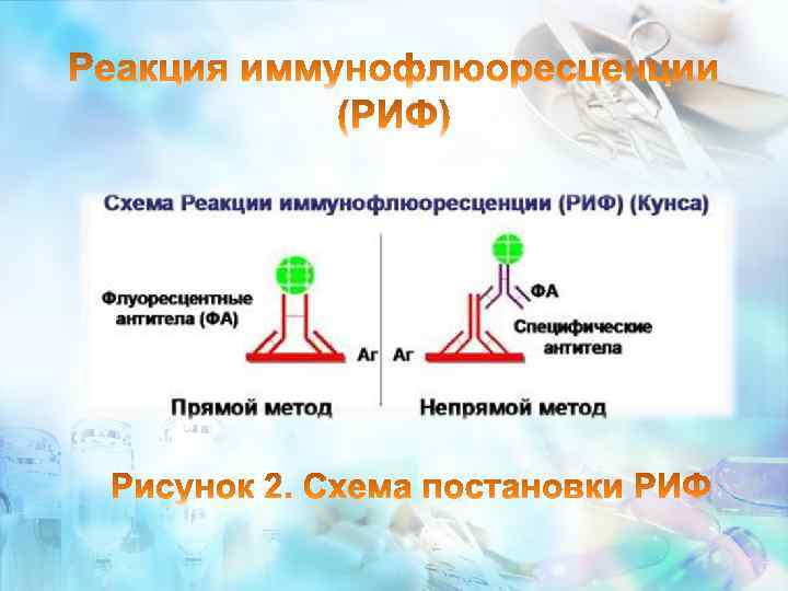 Иммунохимические методы Реакция агглютинации • склеивание и выпадение в осадок микробных тел при взаимодействии их со специфическими антителами –агглютининами. РПГА Для небольших антигенов. Суть: адсорбция на носителях (эритроцитах) с последующей их агглютинацией специфическими антителами.