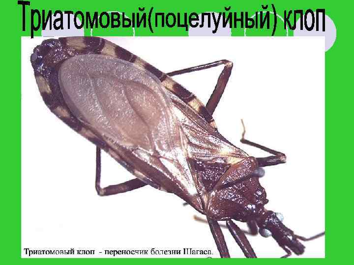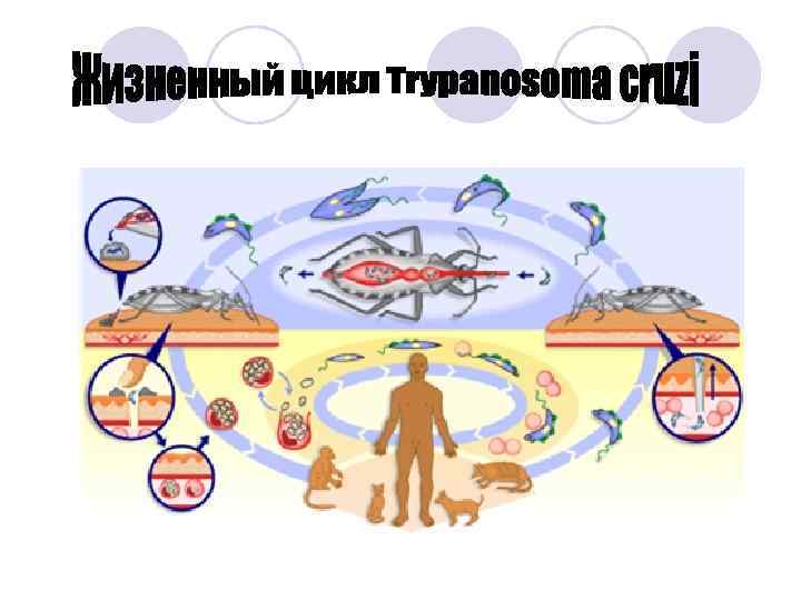 l Трипаносомозы – группа трансмиссивных тропических болезней, вызываемых жгутиковыми простейшими рода Trypanosoma: T. gambiense и T. rhodesiense возбудители африканской сонной болезни; переносчик – муха це-це. l T. cruzi – возбудитель американского трипаносомоза ( болезни Шагаса); переносчик – триатомовый ( «поцелуйный» ) клоп l