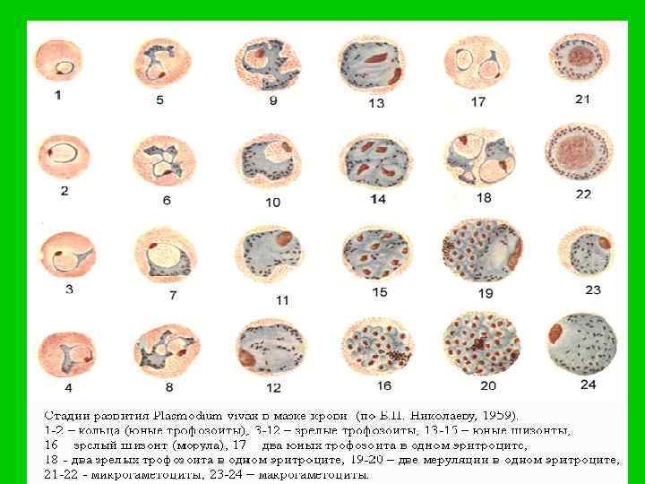 Возбудителями малярии человека являются четыре вида возбудителей: Plasmodium vivax – возбудитель трехдневной малярии Plasmodium malaria - возбудитель четырехдневной малярии Plasmodium ovale - возбудитель овалемалярии (трехдневная форма) Plasmodium falciparum – возбудитель тропической малярии Наибольшее медицинской значение имеют возбудители трехдневной (vivax) и тропической (falciparum) малярии