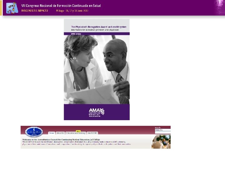 Accreditation Council for Continuing Medical Education (ACCME®) Desde 1968 Acredita proveedores de FC En la actualidad, unos 2500 Creditos AMA PRA categorias 1 y 2.