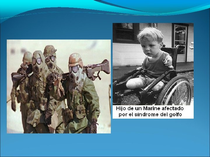 Síndrome de la Guerra del Golfo Soldados estadounidenses empezaron a sentir tras el conflicto vómitos, diarréa, pérdida de memoria, etc. El gobierno americano se ha negado a prestar versión oficial. Se cree que son debidos a armas químicas y biológicas e inhalación de humos producidos por la combustión de petróleo. Uso de drogas experimentales para paliar la acción de las armas anteriores.