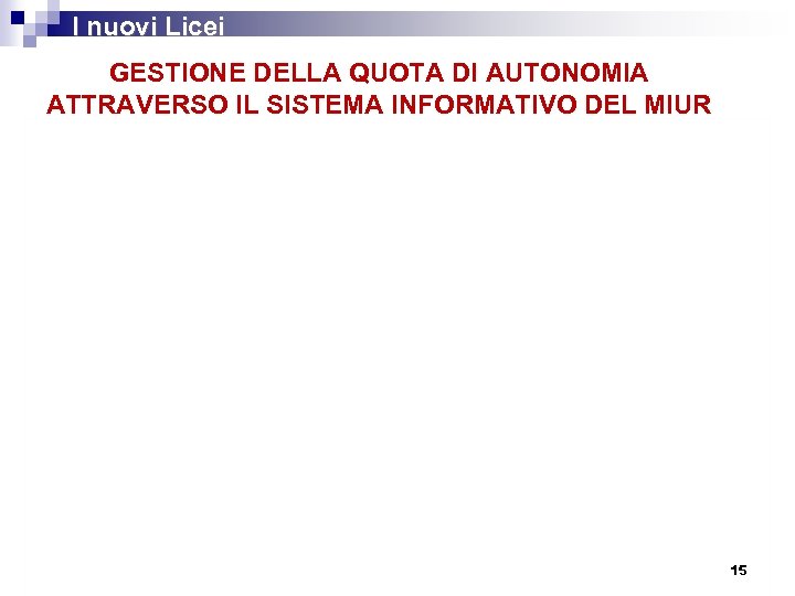 I nuovi Licei GESTIONE DELLA QUOTA DI AUTONOMIA ATTRAVERSO IL SISTEMA INFORMATIVO DEL MIUR 15