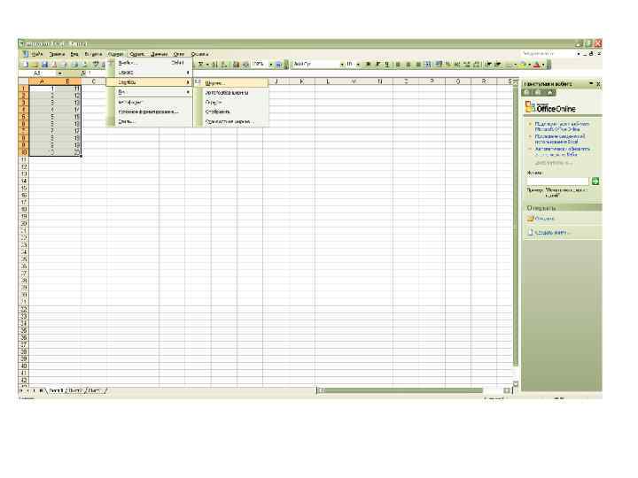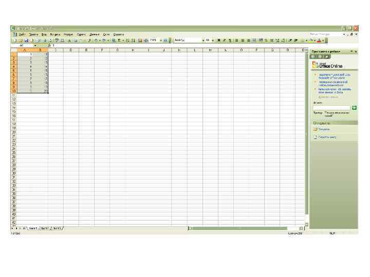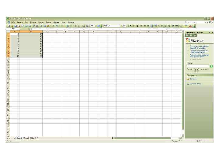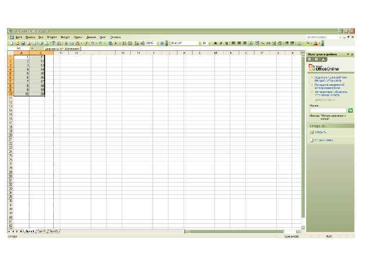 Лабораторная работа № 10. Автозаполнение. • Введите данные в начальную ячейку или смежные ячейки (если задается правило заполнения). • Выберите ячейку или ячейки, в которых установлено правило заполнения. • Установите курсор на Маркере заполнения, маленьком квадратике в правом углу активной ячейки. • Перетащите мышью Маркер заполнения (по горизонтали или по вертикали) до последней ячейки, которую хотите заполнить по абзацу.