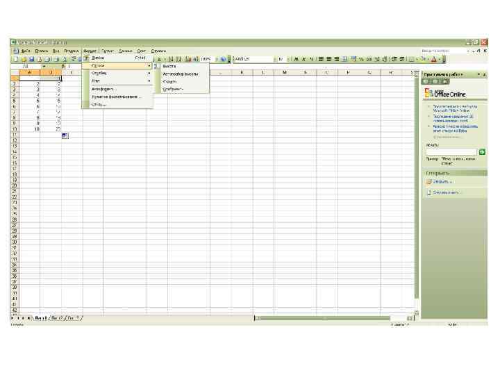 Лабораторная работа № 27. Форматирование строк. 1. Выделите необходимые строки. 2. Выберите Формат, Строка (Format, Row) и требуемые операции (операции приведены в таблице)