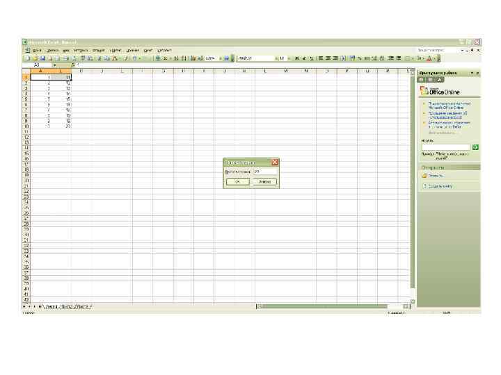 Лабораторная работа № 13 Чтобы показать на экране несколько • рабочих книг или листов. • 1. Выберите Окно, Расположить… (Window, Arrange…). • 2. Выберите один из вариантов расположения и нажмите ОК.