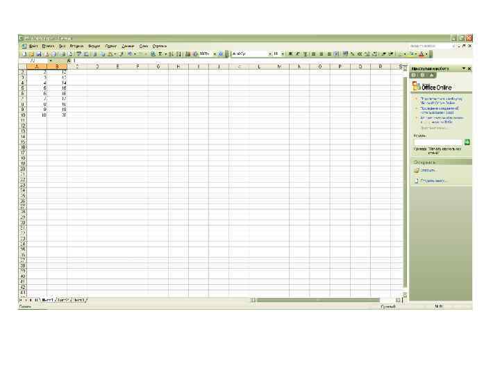 Лабораторная работа № 9 Упражнение. Выполнение вычислений с помощью команды "Специальная вставка". Введите данные, как показано на таблице. • Выделите область для копирования А 2: А 4. • Выберите Правка, Копировать • Щелкните ячейку В 2 (верхний левый угол области, в которую будут помещены данные).