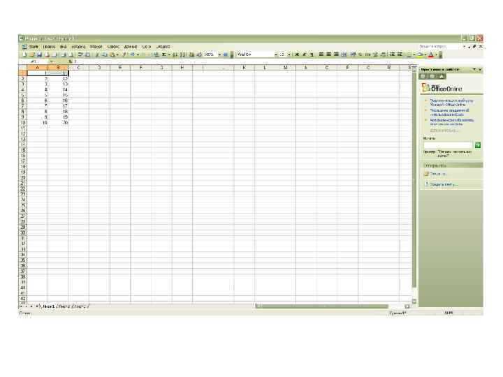 Лабораторная работа№ 1 Задание: • 1. Выберите команду Создать из меню Файл. A • 2. Выберите нужную закладку для определения категории шаблона создаваемой рабочей книги. • 3. Затем выберите шаблон или мастер, на которых будет основываться новая рабочая книга.