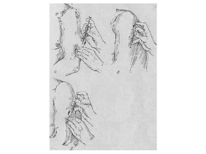 Рис. 4. Техника подкожных инъекций: а – прокол кожи; б – введение лекарства; в – удаление иглы