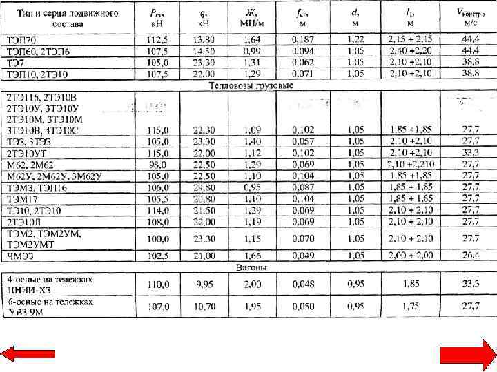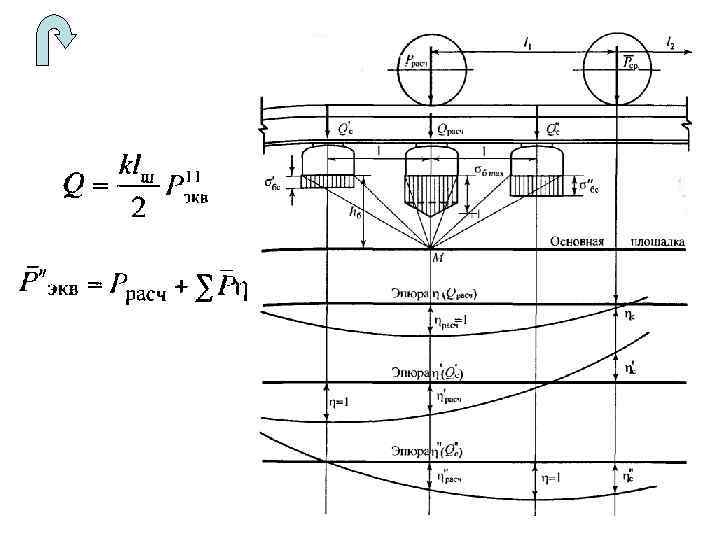 Динамический расчет верхнего строения - определение напряжений на основной площадке земляного полотна 0. 8 – для деревянных шпал 0. 7 – для железобетонных шпал Qрасч С 1 и С 2
