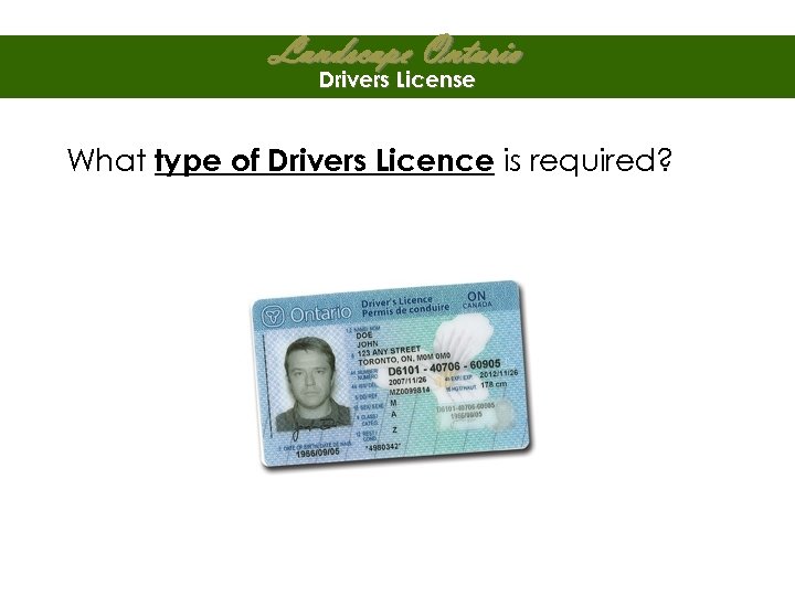 Landscape Ontario Drivers License What type of Drivers Licence is required?