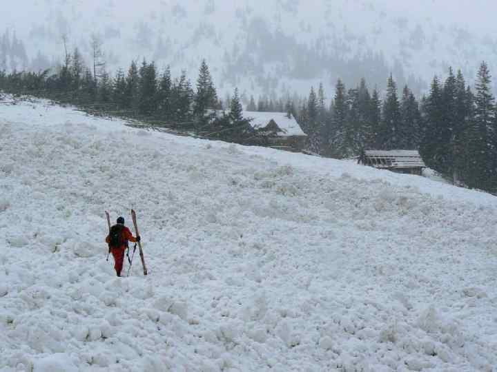 Поведение при попадании в лавину При попадании в лавину следует как можно быстрее избавиться от рюкзака (в крайнем случае разрезать лямки ножом), лыжных палок. Нужно стремиться как можно дольше держаться на поверхности, перекатываться, а при попадании внутрь массы снега — делать активные плавательные движения, стремясь вынырнуть из лавины. После остановки лавины перед лицом нужно сделать воздушный мешок для дыхания, затем, если вы неглубоко — поднять руку, стремясь привлечь внимание спасающих, а если глубоко — постараться меньше двигаться, экономя кислород. Кричать для привлечения внимания следует только если голова не находится в массе лавины, во избежание попадания снега в дыхательные пути.
