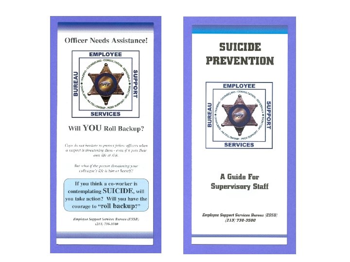 Postvention Helping Your Agency Recover Team responsibilities… Death notification Internal announcements Media statement Cleaning out the locker Cleaning the scene Funeral/memorial planning CISM Monitor for ongoing/delayed reactions