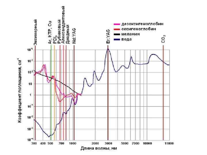 Пропускание света оптических длин волн кожей и УФ-спектры поглощения эпидермальных хромофоров. «терапевтическое окно» 0, 6 -1, 5 мкм
