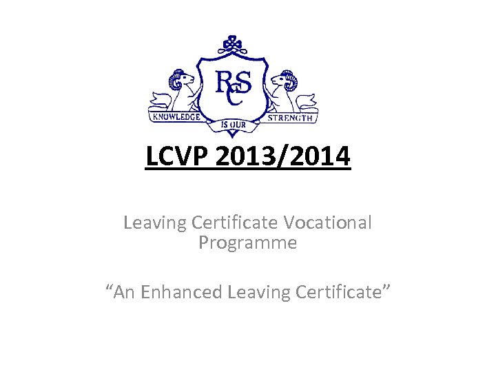 LCVP 2013/2014 Leaving Certificate Vocational Programme “An Enhanced Leaving Certificate”