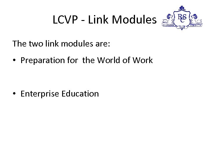 LCVP - Link Modules The two link modules are: • Preparation for the World of Work • Enterprise Education