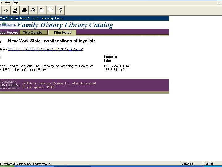 FHL CATALOG On line Version – Current CD Version – 2002 Biggest Database of Source Materials Over 3 million entries