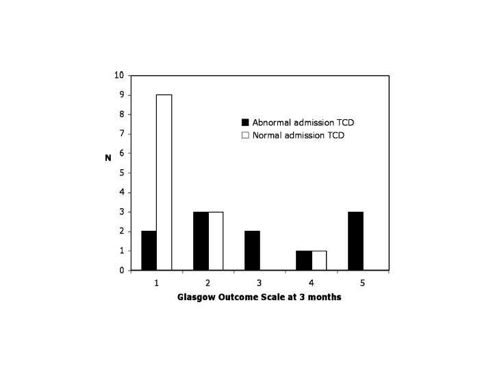 TCD in emergency department n = 42 patients with mild (GCS 14 -15) brain injury n = 36 patients with moderate (GCS 9 -13) brain injury Jaffres, Intensive Care Med 2005
