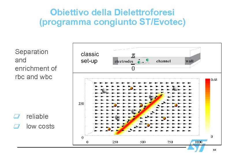 Obiettivo della Dielettroforesi (programma congiunto ST/Evotec) Separation and enrichment of rbc and wbc reliable low costs 64