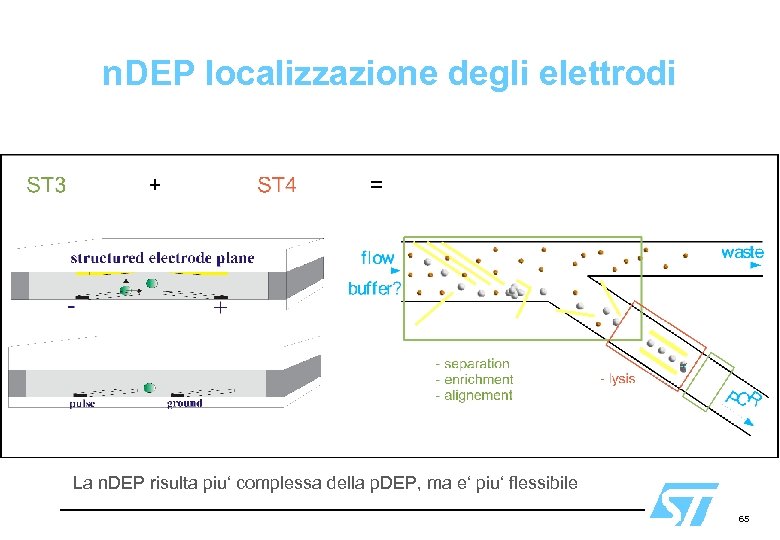 n. DEP localizzazione degli elettrodi La n. DEP risulta piu‘ complessa della p. DEP, ma e‘ piu‘ flessibile 65