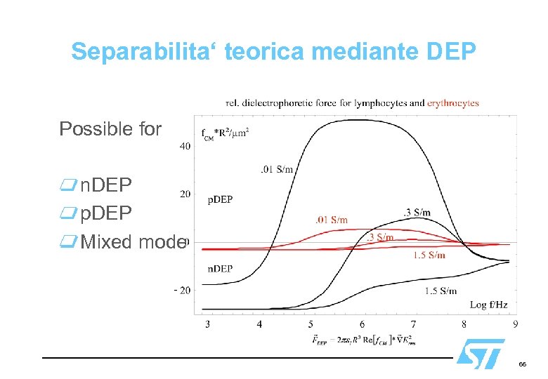 n. DEP in confronto con p. DEP La separazione di globuli bianchi dai globuli rossi e‘ possibile sia con DEP positiva che negativa Ge > 0. 4 S/m f = 1700 k. Hz U=2 V Ge < 0. 1 S/m f = 1700 k. Hz U=2 V Fn. DEPwbc>> Fn. DEPrbc Fp. DEPwbc>> Fp. DEPrbc 67