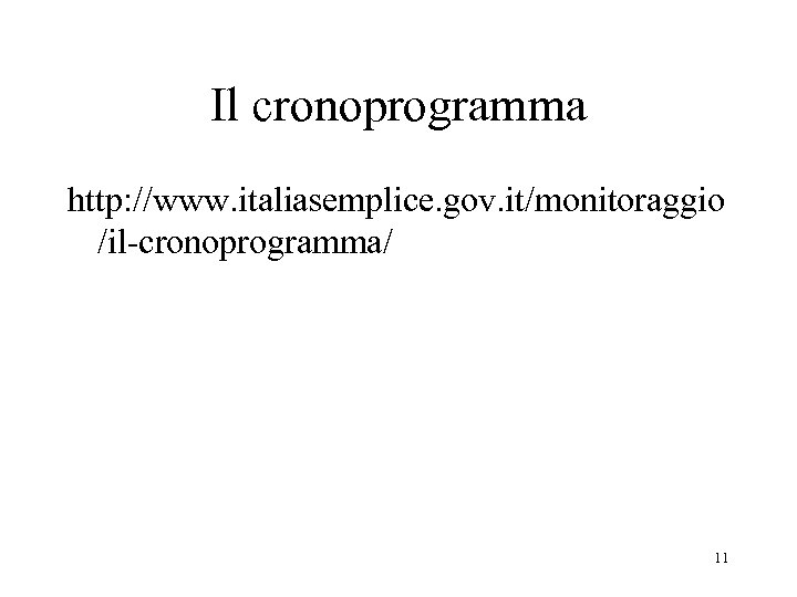 Il cronoprogramma http: //www. italiasemplice. gov. it/monitoraggio /il-cronoprogramma/ 11
