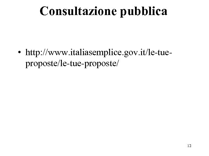 Consultazione pubblica • http: //www. italiasemplice. gov. it/le-tueproposte/le-tue-proposte/ 12