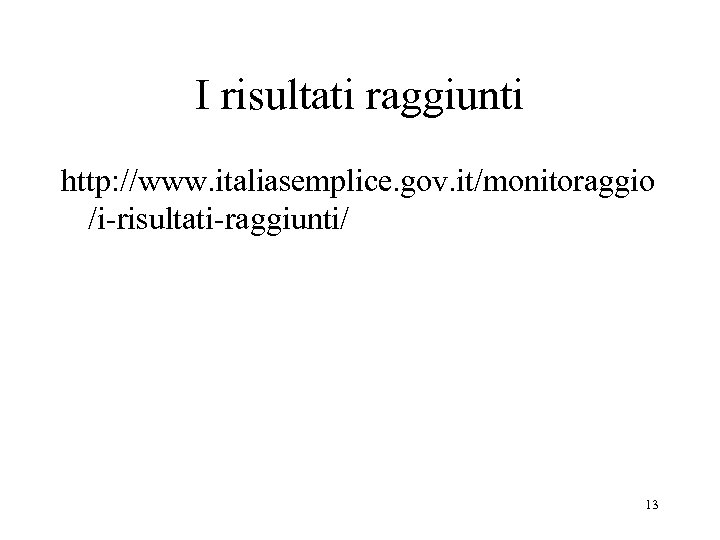 I risultati raggiunti http: //www. italiasemplice. gov. it/monitoraggio /i-risultati-raggiunti/ 13