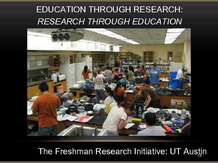 EDUCATION THROUGH RESEARCH: RESEARCH THROUGH EDUCATION The Freshman Research Initiative: UT Austin 12