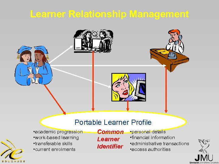 Learner Relationship Management Portable Learner Profile • academic progression • work-based learning • transferable skills • current enrolments Common Learner Identifier • personal details • financial information • administrative transactions • access authorities