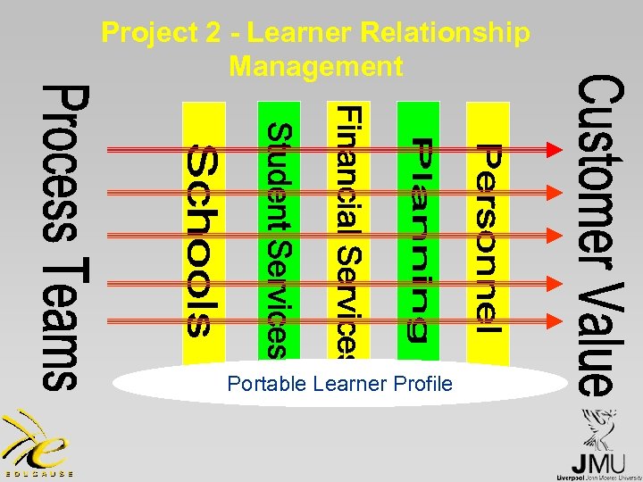 Project 1 – Oracle Student System • • • JMU development partner for UK implementation Project ongoing since February 2000 Go-live fall 2002 New approach – system ‘for’ not just ‘about’ students Building block of LRM – future integration with CRM seen as essential & impending with ‘Advanced Recruitment’ component • Approach adopted both emphasises and highlights people and process issues which must be addressed if approach is to succeed
