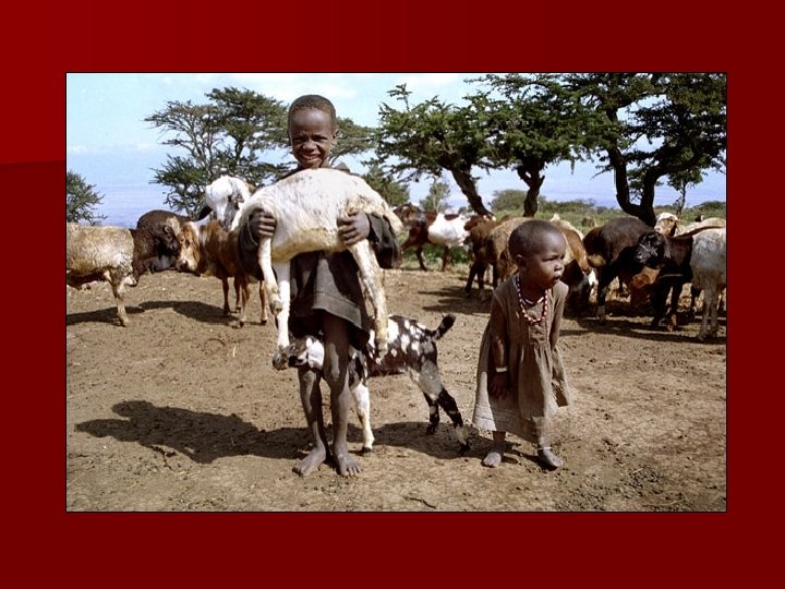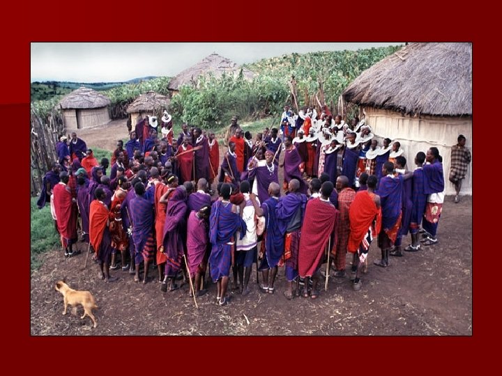 Enaboishu – Oneness (We ARE one family!) n n n Young men aren’t allowed to eat meat, drink milk or even take a bath alone! Elders & children are looked after by the whole village Children eat wherever they’re hungry and sleep wherever they’re tired Everyone helps out at community festivals Everyone works together in building new houses, searching for lost cattle and growing food