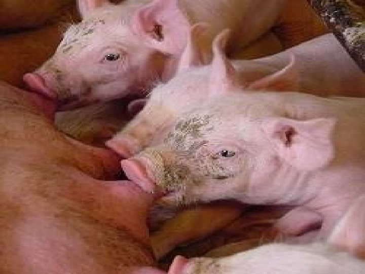 Pig Production Sow has to produce at least 2 litters a year 20 weaners In Young Sow She is housed in a dry sow house Fed once per day(2. 5 kg) In early pregnancy some sows are over thin because they have reared a big litter- these have to be given extra feeding to bring them to proper weight In the final 3 -4 weeks sows are fed an extra 0. 5 kg/day to ensure strong healthy bonhams & good milk production A week before farrowing date the sow is moved to the farrowing unit.