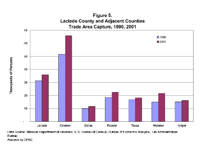 Example For Laclede County Trade Area Capture (TAC) calculation: County TAC = for Total Retail Sales TAC = 31, 295 (persons) TAC for Food Subsector = 36, 884 (persons)