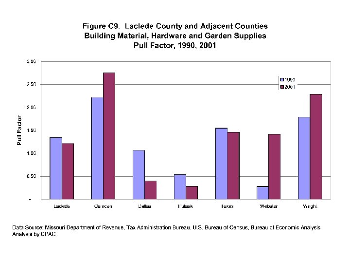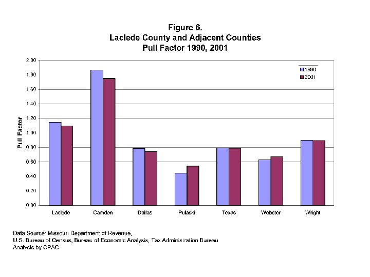 Example For Laclede County Pull Factor (PF) calculation County PF for Total Retail Sales = 1. 15 PF for Food Subsector = 1. 36