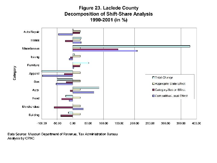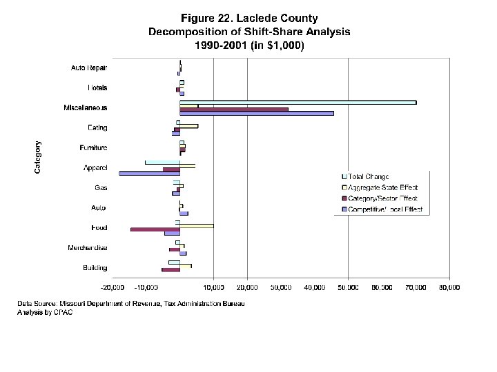 Key Findings Laclede County’s pull factor decreased from 1. 15 in 1990 to 1. 09 in 2001. The county is drawing customers from outside its borders or its residents are spending more on retail sales than the state average Miscellaneous Retail appears to be the fastest growing category with respect to maintaining or capturing customers within its trade area. Several retail categories show promise for expansion in Laclede County. These include Miscellaneous Retail, Hotels and Motels, and Automotive.