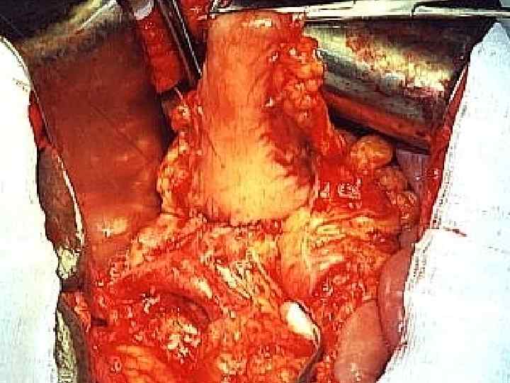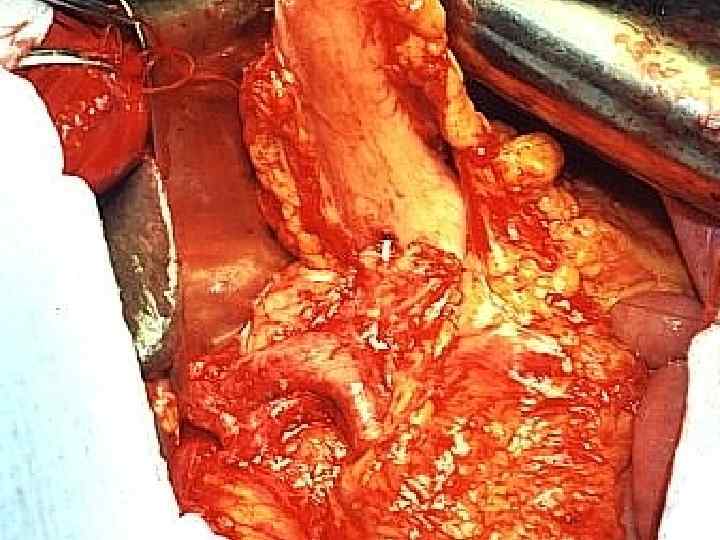 Противопоказания к радикальным операциям 1. Метастазы в печени и по брюшине (продолжительность жизни одинакова при оперативном и лекарственном лечении) 2. Метастазы в парааотральные лимфатические узлы (расширенная ГПДР несколько улучшает результаты по сравнению с лекарственным лечением – медиана 8, 9 мес. против 5, 9 мес. , S. Yamada et al. , 2009) 3. Истинное врастание в магистральные артерии. (1 -летняя выживаемость – 16%, 2 -летняя – 0, Ch. Wang et al. , 2008, 1 -летняя выживаемость – 0, P. Bachellier et al. , 2011). При ГПДР с резекцией магистральных артерий умерло 5 из 15 больных. Большинство больных, переживших 2 -3 летний срок, имели R 0 резекцию