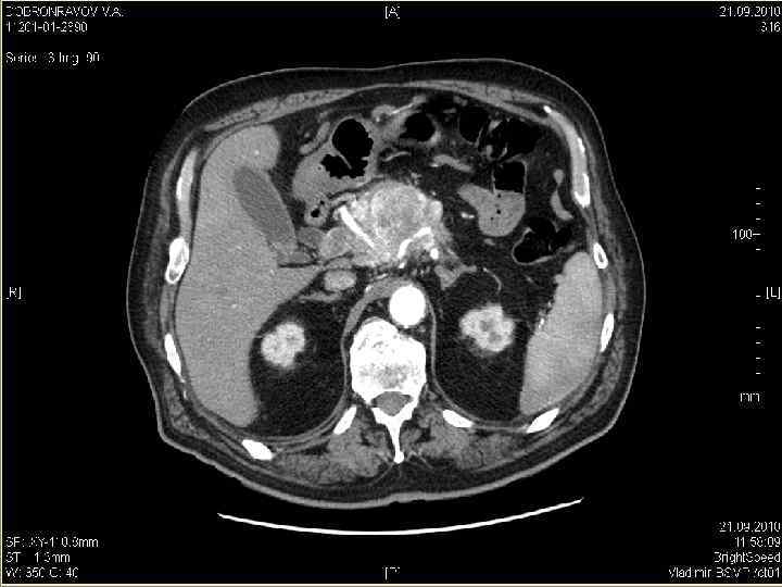 Отдаленные результаты лечения Рак тела и хвоста поджелудочной железы • • Комбинированное лечение проведено 47 больным Выживаемость: 1 -летняя – 51, 1 % 3 -летняя – 16, 7 % 5 -летняя – 11, 1 % Максимальная продолжительность жизни – 72 мес. Медиана – 12 мес.